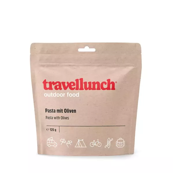 A massa com azeitonas da Travellunch é um prato liofilizado vegetariano saboroso e rápido de preparar, ideal para as suas refeições em plena natureza. Inspirada nos sabores italianos, esta receita associa massa tenra a um molho aromático e azeitonas, para uma refeição farta e equilibrada.