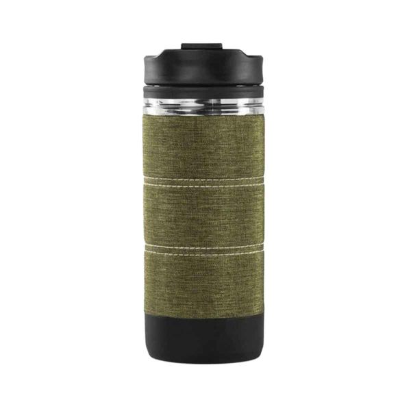 A sua construção em copoliéster sem BPA confere-lhe uma boa resistência aos impactos, adaptada às condições outdoor. A manga isolante em espuma EVA melhora a pegada e reduz a sensação de calor, enquanto a base antiderrapante garante maior estabilidade e encaixa na maioria dos porta-copos.