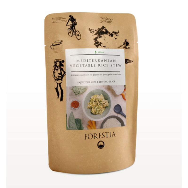 Este prato esterilizado da Forestia é composto por alcachofras, couves-flor, pimentos vermelhos, alho e arroz. É uma refeição vegan sem OGM, sem conservantes, sem corantes nem aromas artificiais.